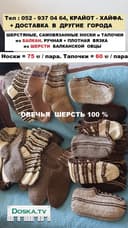 Куртка женская “CRAZY LINE” и мужская с капюшоном. Шерстяные носки, овечья шерсть 100 %. Цена и размер написаны на каждой фотографии. Нахожусь в Крайот, Хайфа. + Доставка в другие города.