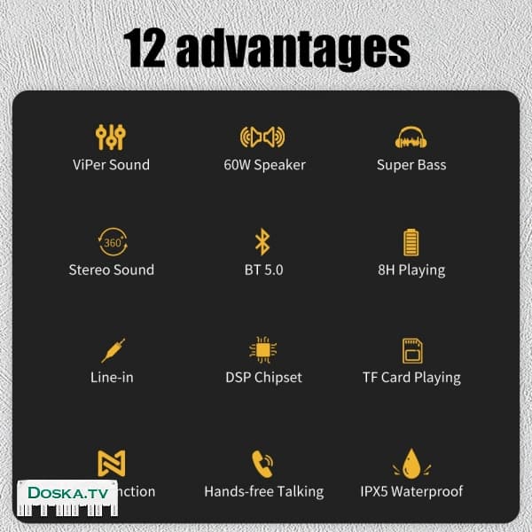 Продаю колонку для тех кто понимает XDOBO X8 Bluetooth-Колонка 60 Вт Портативная колонка с глубокими басами, звуковая панель с IPX5, водонепроницаемая колонка, 360-градусный объемный звук, голосовой помощник Bluetooth 5,0 Водонепроницаемый IPX5 с функцией TWS можно спаривать 2 колонки между собой получается качественный стерео звук Можно использовать и для телевизора Sound bar Батарея 6600 мАч до 15 часов нон-стоп музыки на одной зарядке Есть 2 колонки Стоимость одной колонки 450 шек.Две колонки 800 шек