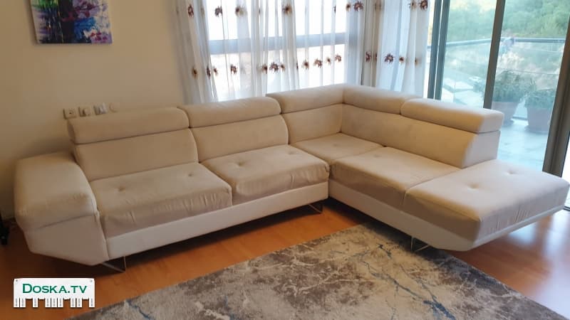 Угловой диван цвета беж. Размеры каждого 2м X 1м , как указано на схеме. Очень удобный , ортопедический. Гибкие в цене.