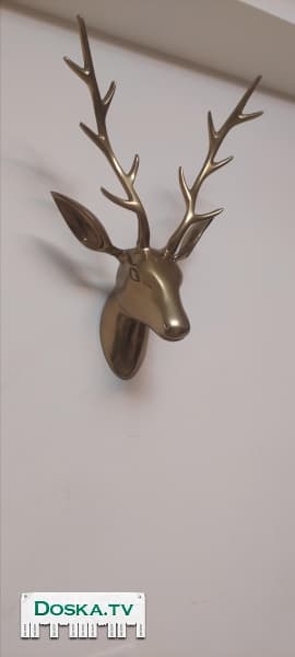 Декоративная голова оленя золотого цвета. Для крепления на стене салона,