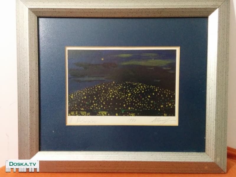Картина очень романтична, вид спящего города, где столько всего происходит, работа местного автора в раме и под стеклом