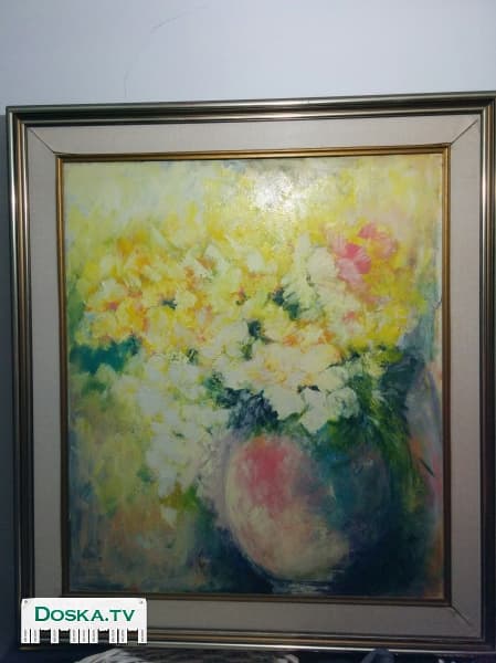 Натюрморт с вазой цветов, очень теплые тона, придает тепло в доме, с красивой рамой и паспорту, очень рекомендую даже как подарок.. Написана маслом местной художницей Мириам Цвигю.