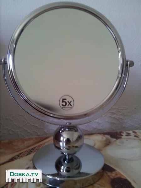 Зеркало настольное, двухстороннее. Увеличительная сторона х5. Отличного качества. Незаменимо при уходе за лицом и нанесении макияжа.
