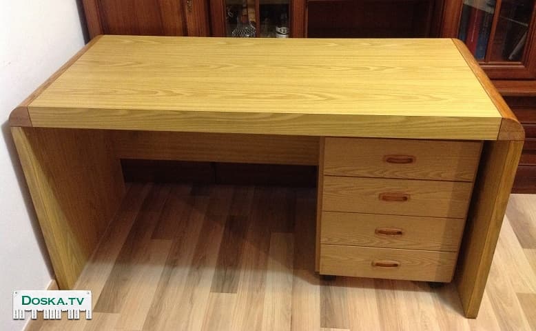 Стол письменный 143x75x60 с тумбочкой на колесиках.