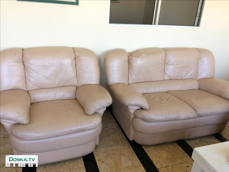 Продаю кресло и два дивана. Материал - кожа, цвет - бежевый. Все механизмы в исправном состоянии. Стоимость 500 шекелей.