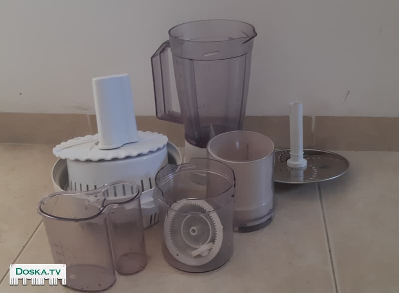 Кухонный комбайн, использовался мало. Работает очень хорошо. Взбивает, натирает, делает соки, замешивает, измельчает, смешивает.