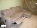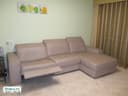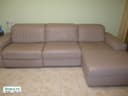 Итальянский угловой салон из натуральной кожи с левой стороны с шезлонгом ,с правой стороны с реклайнером, общая длина 280 см цвет Капучино, Сидушка с реклайнером раскладывается до лежачего положения, подголовники регулируются