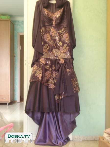 Вечернее платье для мамы жениха или невесты сиреневого цвета с отделкой и рукавами из шифона. Пошито по каталогу известной фирмы. Платье со шлейфом, который потом можно подколоть. Размер46-50. Есть шаль для прикрытия головы.