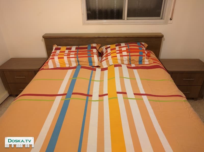 Спальня из натурального дерева, изготовлено по спецзаказу: кровать с ящиком и ортопедическим матрацем, две тумбочки и трюмо. Все в отличном состоянии. Размер кровати-200*160.