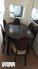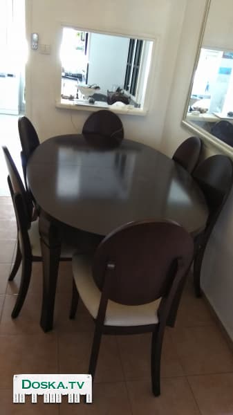 Стол с шестью стульями из цельного дерева, раздвижной, при полном использовании 2.80 метра, очень удобные стулья.