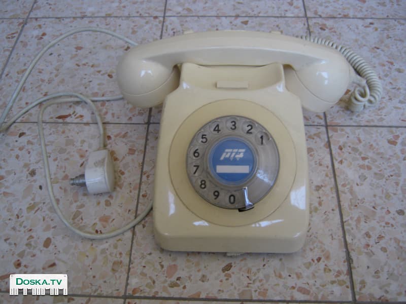 Настольный телефон старого боразца с дисковым номеронабирателем, в хорошем исправном