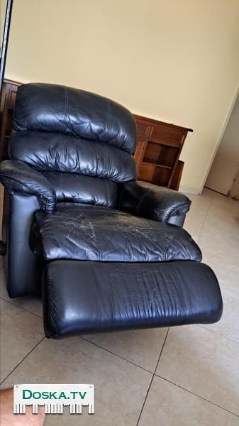 Кресло качалка с открывающий поддоном для ног,материал - кожа