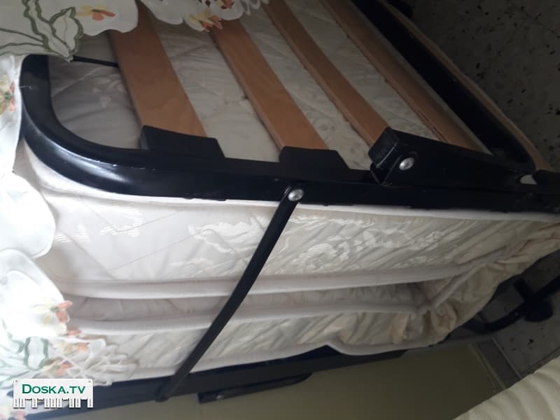 Новая ортопедическая раскладная кровать с деревяным каркасом и деревяной отделкой. Очень качественная. Новая.