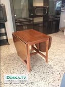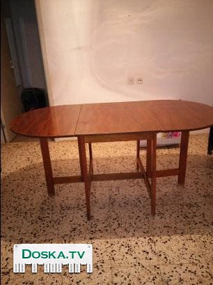 Стол-книжка полированный деревянный коричневого цвета,складывается в размер 85х60, два откидных крыла по 54 см.,овальной формы, итоговая длина 168 см.