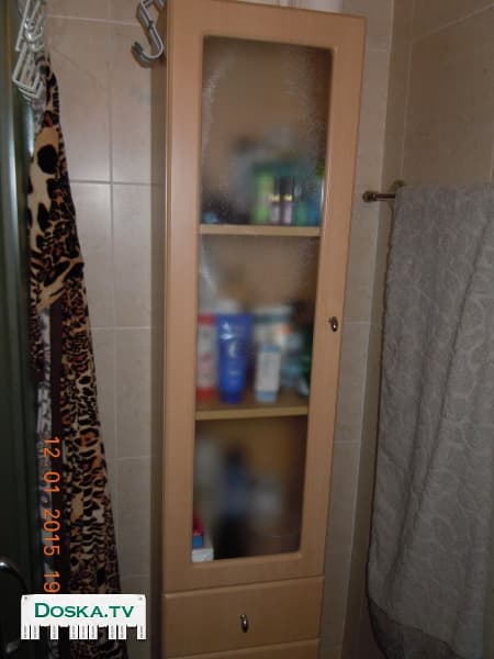 Шкаф-пенал для ванной с полками внутри, дверца с матовым стеклом.