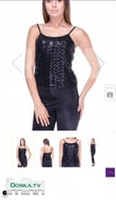 Стильная майка приталенного силуэта, декорированная пайетками. Изделие с тонкими бретелями и круглым вырезом. Представленная модель — незаменимая вещь в гардеробе каждой девушки.