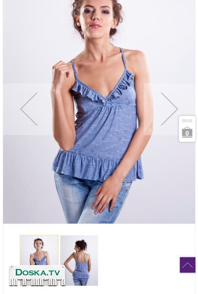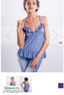 Топ прямого кроя, выполненный из гладкой ткани. Изделие на узких бретелях. Модель дополнена оборками на лифе и по низу изделия. Состав: Вискоза 7%, Полиамид 25%, Эластан 5%