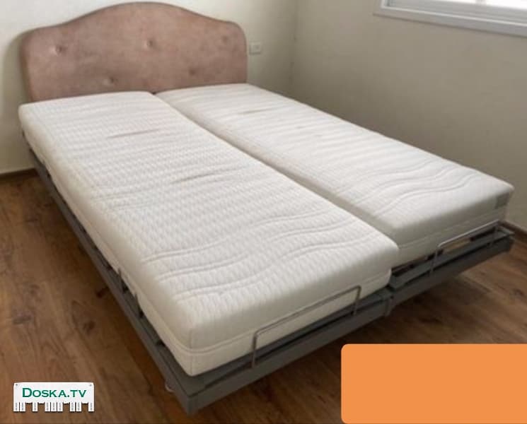 Электрическая кровать (160*200), регулируемая в области головы и в области ног, состоящая из двух односпальных (80*200) механизмов, два отдельных мотора, 2 пульта, мягкое изголовье. Имеются так же матрацы в комплекте, за дополнительную плату. Состояние отличное. Куплена в 2022 году за 22500 шек, фирма Свисфлекс. Есть возможность доставки и сборки в любой город. Этаж нулевой. Цена 1799 шек - за одну, 2999 шек - за обе, изголовье можно купить отдельно за 1000, две кровати вместе с изголовьем 3899. Матрасы продам только вместе с кроватью за дополнительные 3499 за пару. Можно звонить в шабат.