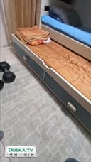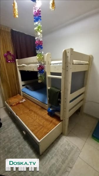 Кровать детская двухъярусная с двумя выдвижными ящиками для вещей и выдвижной дополнительной третьей кроватью.В хорошем состоянии.