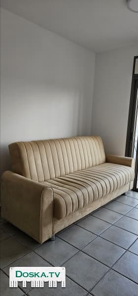 Срочно продается практически новый диван-кровать книжка светло-оранжевого цвета, высокая спинка, удобная для поддержки плеч и головы в положении сидя. Имеется большой встроенный ящик для белья. Размеры: длина 230, ширина при разложении 116 см. Стоимость 1100 шекелей. Обращаться по тел.