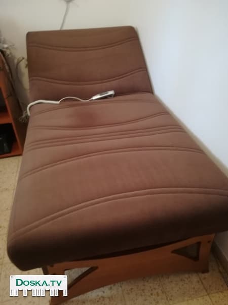 Односпальная кровать с ортопедическим матрасом.Имеется пульт для регулирования изголовья. Под матрасом ящик для белья.Обивка велюровая, шоколадного цвета. Размер: 195 х 93.Кровать новая, отличного состояния.
