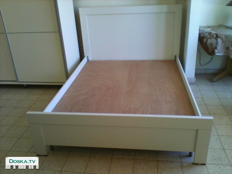 Продается двухспальная кровать (190x140) в хорошем состоянии, светло-бежевого цвета с двумя прикроватными тумбочками - 850ш. (матрас в комплект не входит)