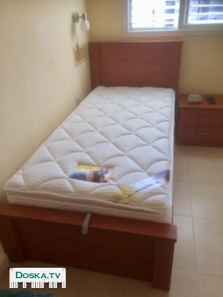 90 на 190. Матрас "Аминах" совершенно новый. Продаем, потому что не подходит по ширине. Возможность взять с совершенно новой кроватью и 2 тумбочки.