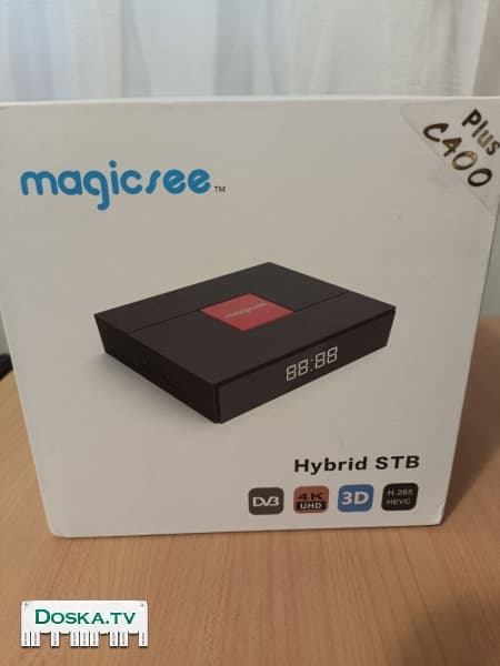 Гибридный ТВ бокс с DVB-T2/S2 тюнером Magicsee C400 Plus DVB-S2/T2/C Приставка гибридная Андроид. Прошита модом Malaysk с Рутом. Ссылка на характеристики, описание и вся информация на 4pda: https://4pda.to/forum/index.php?showtopic=902621 Возможна установка приложений для просмотра телевидения, фильмов, сериалов и т. п.