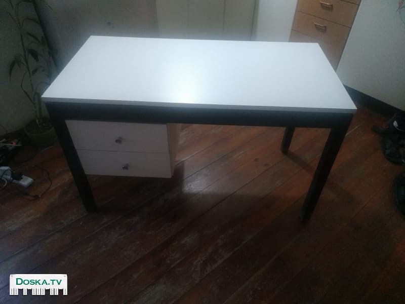 Красивый рабочий стол из дерева. Белого цвета. С двумя выдвижными ящичками. Габариты: длина-60 см, ширина-120 см, высота-75 см. Состояние отличное. Продается в связи с переездом.