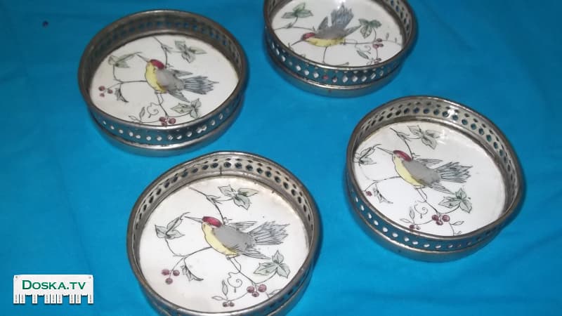 Подстаканники старинные (более 100 лет), фарфор, металл. Состояние отличное 4 шт/