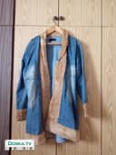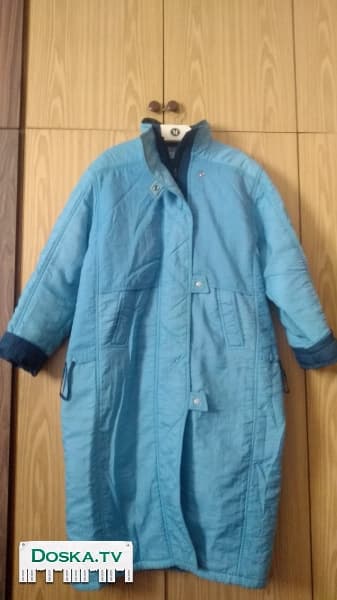 длинное нейлоновое пальто голубого цвета с теплой подкладкой размер XXXL купившему в подарок джинсовая куртка того же размера