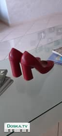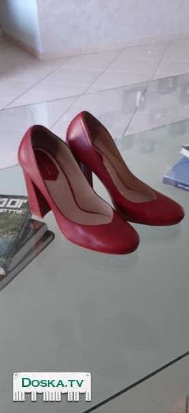 Элегантные кожаные туфли на каблуке 10 см.красные,почти новые.Размер 36-36.5