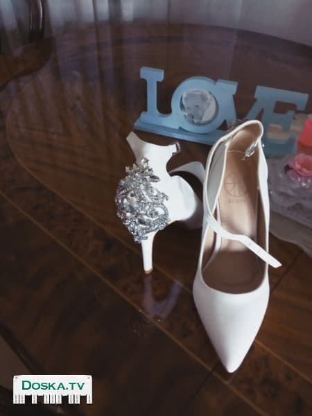 Новые.в УПАКОВКЕ БЕЛЫЕ ШИКАРНЫЕ туфли 39 размера инкрустированные камнями за пол цены (купленные без примерки и не подошли после примерки).Очень красивые.можем привезти в центр страны