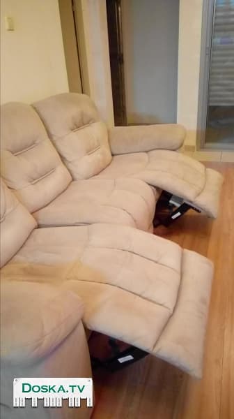 Кресло цвет-беж для отдыха широкое разкладное для ног. Есть фото дивана такое же и кресло.