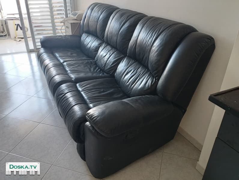 Отдам бесплатно диван трехместный с двумя реклайнерами(выдвижные подставки для ног) черного цвета. Очень удобный.