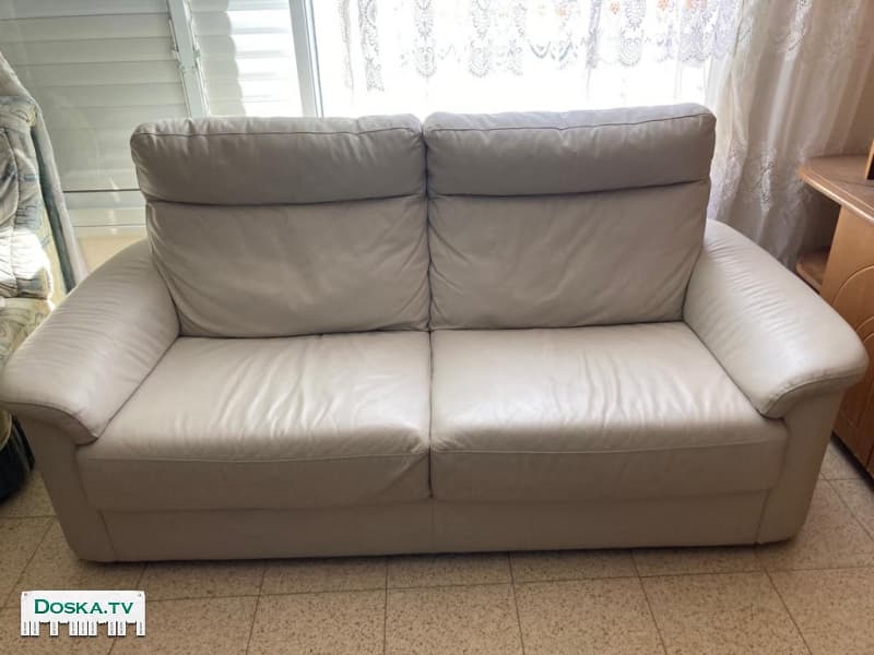 В наличии два дивана из искусственной кожи белого цвета. Один поменьше, другой побольше. Длина большого дивана 195 см Длина дивана поменьше (двухместного) 150 см Стоимость большого дивана - 300 шекелей, маленького дивана 250 шекелей. Забрать в городе Ашдод, до 3 декабря В доме есть лифт В аккаунте много другой хорошей мебели - можно сразу обставить всю квартиру
