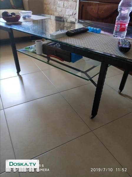 Стол журнальный на колёсиках железо-стекло 136см.х 67см.