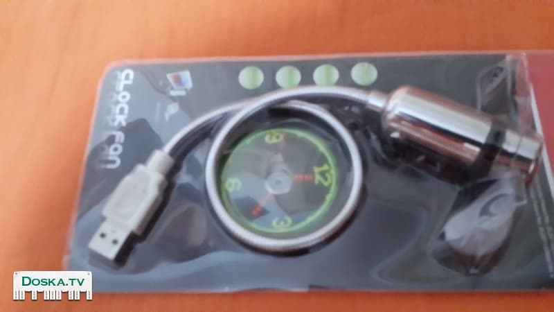 Новый в упаковке вентилятор для переносного компьютера-вставляется в юсб.Предозначен для пользователя компа вместо включения кондиционера в душном помещении. Можно направлять в любом направлении. Во время работы показывает также время. Достаточно мощный.