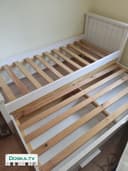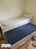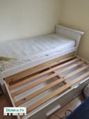 Продаю б/у детскую кровать двухуровневую не чердак(выдвигается сбоку 2ое место), есть выдвижные ящики 2 шт для белья и подушек, отдам с ней бесплатно два матраса. размер кровати 200см*90см ( 2 места по 200*90см), самовывоз, лифт есть.
