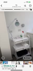 Кушетка со стулом для косметолога( белый),витрина,стол письменный, три тележки медицинские,часы настенные, зеркало настенное, лампа для косметолога