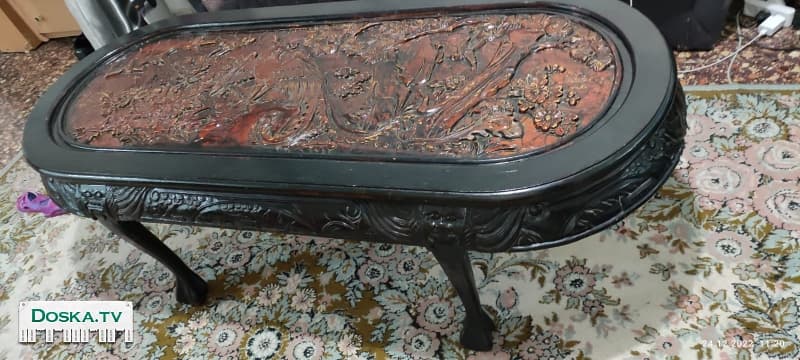Стол из натурального дерева с ручной резьбой Длина 1м 50 см. Ширина 5о см. Высота 55 см.