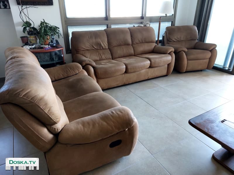 Салон 3+2+1 в хорошем состоянии. Диван 3 открывается в двухспальную кровать. В диване 2 и в кресле есть риклайнеры.