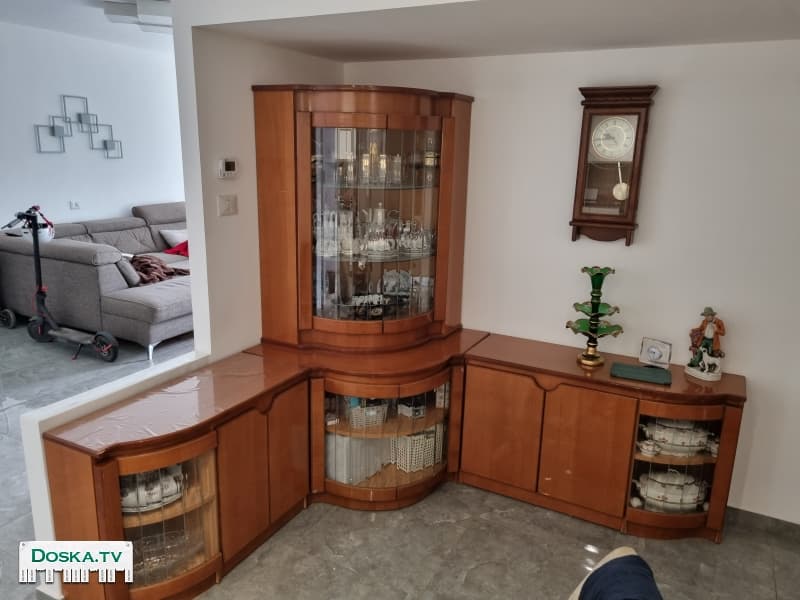 Витрина (сервант) в старинном стиле. Легко разбирается для перевозки. Размеры: длина справа 2000, слева 1850, высота 2000