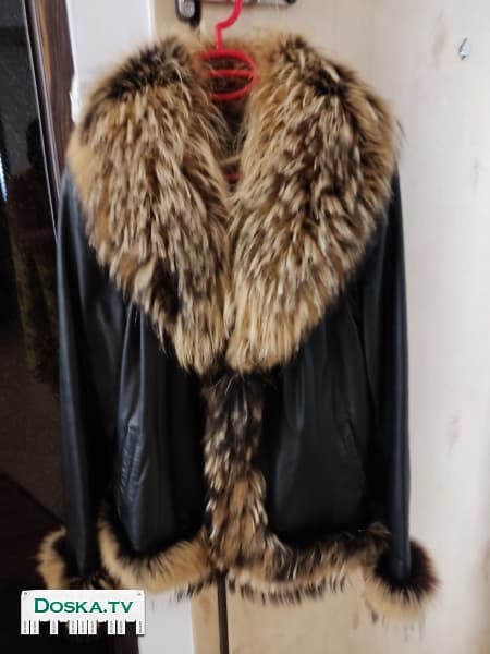 Новая кожаная куртка с натуральным мехом (чернобурка) размер М-L черного цвета.