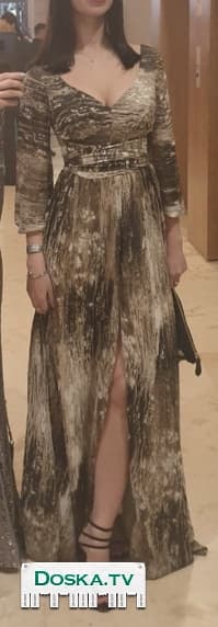 Платье в пол( с подкладом). Есть разрез. На широком поясе( завязываю сзади виде банта). Рукава длинные, за счёт резинок, можно делать рукав 3/4. Одевалось 2 раза ( в идеальном состоянии)