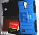 Комплект- для телефона Galaxy S4 MINI- защитная накладка в виде книжки-коричневый цвет+ защитная оболочка против сильных ударов(USA), синего цвета-противоударный, пластик+черная прорезиненная оболочка+ запасная новая батарея TESLA на 2000 мАмп.