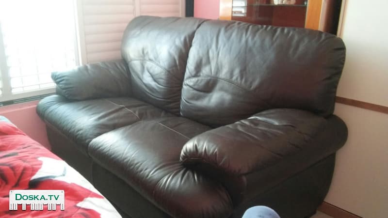 диван двойка, в хорошем состоянии! Ширина 167см, темно коричневый, Кожзаменитель,