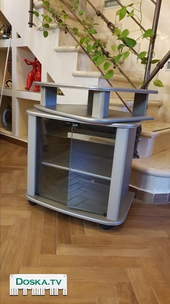 Продаётся тумба для телевизора, серебристого цвета с вращающейся верхней частью в хорошем состоянии.