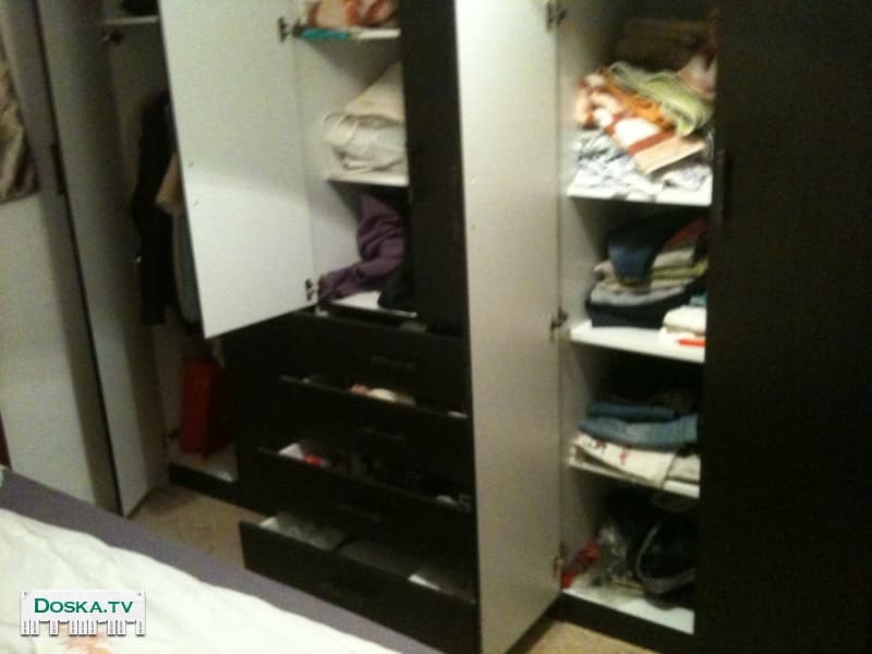 Шкаф платяной, темнокоричневый, 2400 X 2400 X 550, шесть дверей, четыре выдвижных ящика, состояние отличное, разобран. Цена: 1200 шекелей.