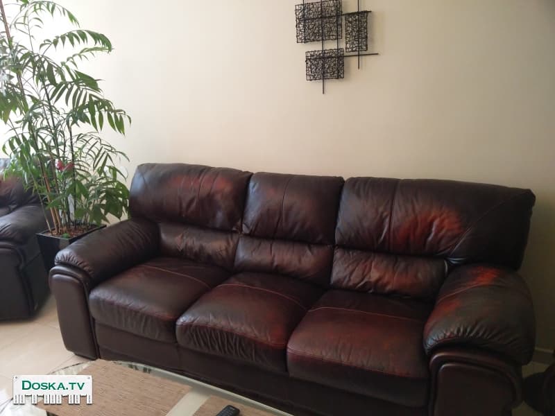Салон 3+1+1 из натуральной кожи производства Италия. Два кресла с реклайнерами. Очень удобный. В хорошем состоянии. Цвет коричневый.
